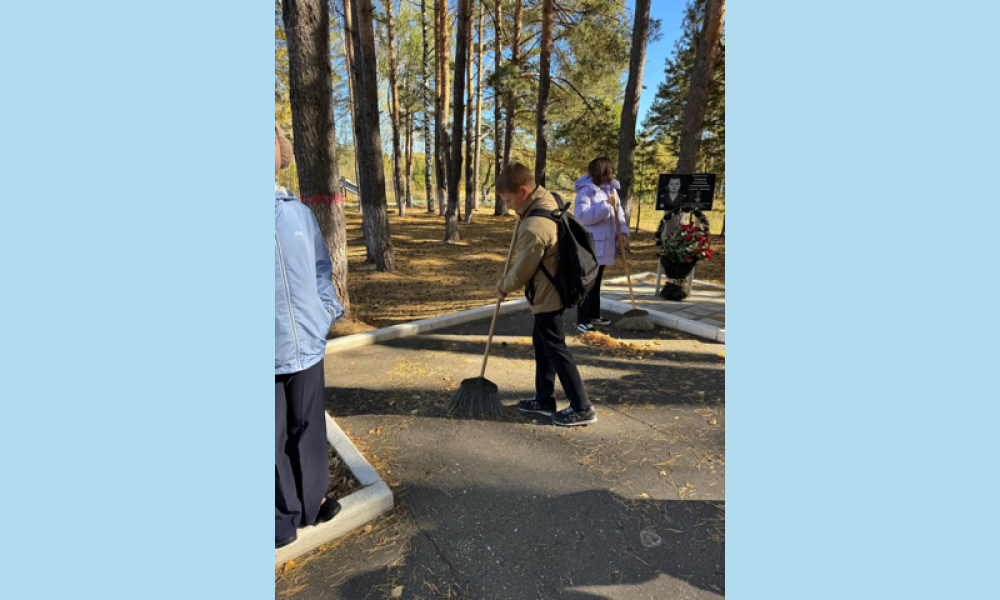 Ребята убрали опавшую листву, подмели дорожку, чтобы каждый уголок этого священного места говорил: «Мы помним, чтим, гордимся!» Этот момент важен для всех нас, ведь память о героизме и мужестве должна жить в наших сердцах.